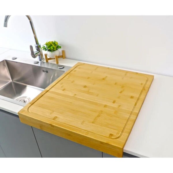 Ahşap tezgah üstü kesme tahtası, doğal ahşap malzemeden üretilmiş olup mutfağınızda hem şıklık hem de kullanım kolaylığı sağlar. 38x45 cm ölçülerindeki küçük boy tasarımı ile tezgah üstünde rahatlıkla kullanılabilir. Sağlam ve dayanıklı yapısı sayesinde uzun ömürlüdür. Yüzeyinde bulunan oluk sistemi, doğrama sırasında su ve meyve-sebze sularının dışarı taşmasını önleyerek hijyenik kullanım sunar. Et, sebze, meyve ve ekmek doğrama için idealdir. Kaymaz yapısı ile güvenli kullanım sağlar.