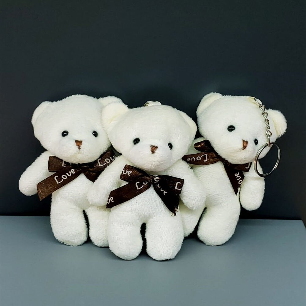 1 adet fiyonklu krem renk ayıcık anahtarlık