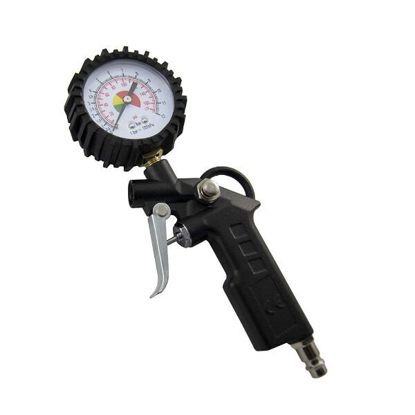 Saatli hava tabancası, araç lastiklerinin hava basıncını ölçmek ve doğru seviyeye getirmek için profesyonel bir çözümdür. Üzerinde bulunan hassas manometre sayesinde lastik basıncı bar ve psi cinsinden kolayca takip edilebilir. 0-8.5 bar / 0-120 psi ölçüm kapasitesine sahiptir.500 mm hortum uzunluğu ile kullanımda esneklik sağlar. Dayanıklı metal gövdesi ve ergonomik tetiği sayesinde uzun süreli kullanımlarda konfor sunar. Hızlı ve güvenilir hava dolumu için tasarlanmış bu ürün, hem profesyonel servislerde hem de kişisel araç bakımında ideal bir yardımcıdır.