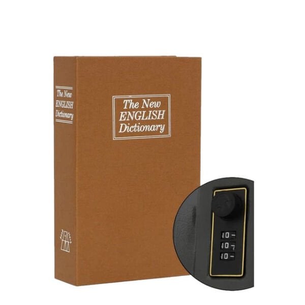 Şifreli kitap kasa, gerçek kitap görünümünde tasarlanmış güvenli bir saklama kutusudur. Dış kısmı “The New English Dictionary” yazılı kapakla kaplanmıştır ve kitaplıkta sıradan bir kitap gibi durarak dikkat çekmez. İç kısmında çelik kasa bölmesi bulunur ve 3 haneli şifreleme sistemiyle korunur. Değerli eşyalarınızı, nakit paranızı, takılarınızı ve belgelerinizi güvenle saklamak için idealdir. Hem ev hem de ofis kullanımı için uygundur. Kompakt boyutları sayesinde kolay taşınabilir ve gizlenebilir.
