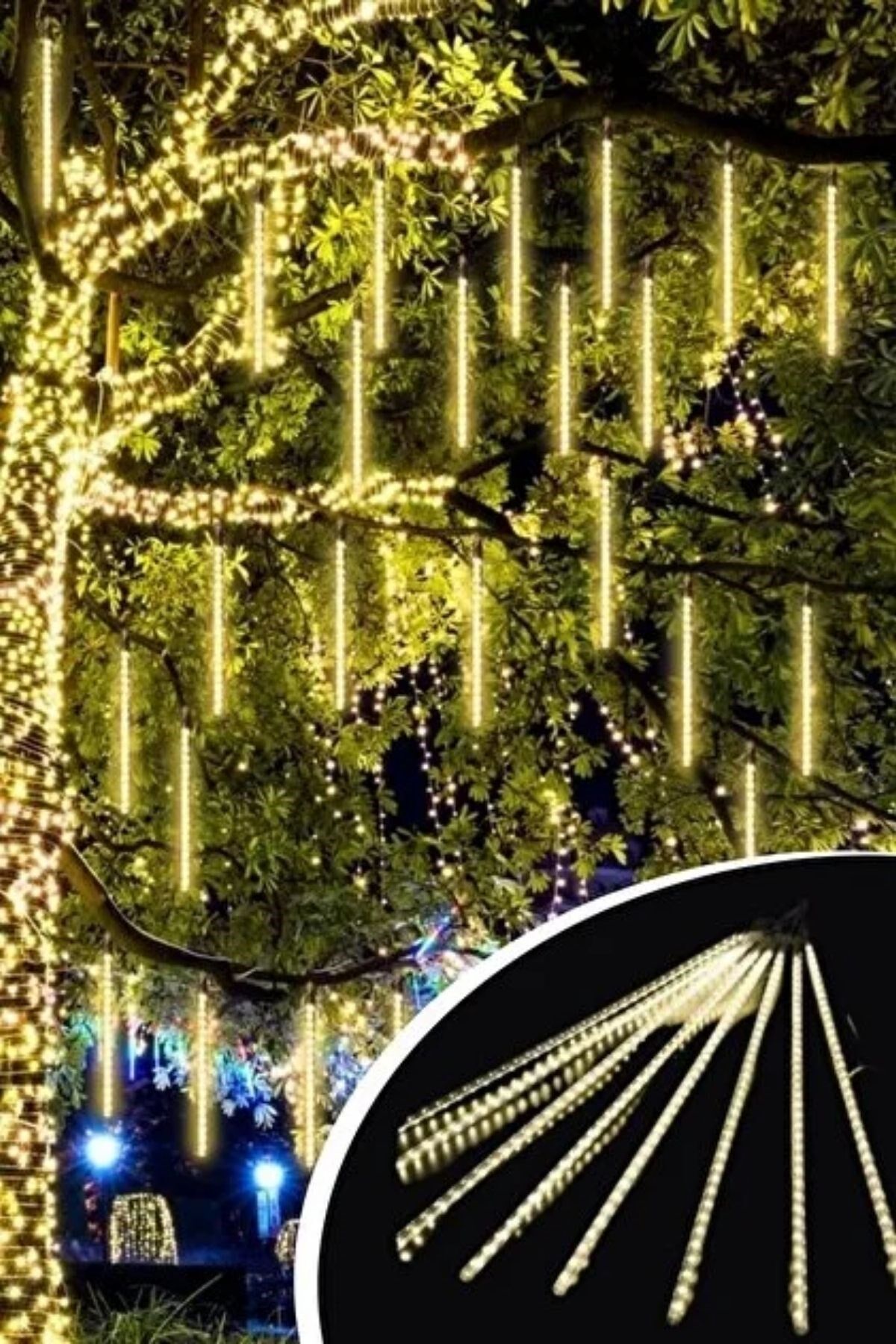 Plastik Meteor LED USB Sarı Renk Ağaç Işığı – Renk Değiştiren Asmalı Dekoratif Bahçe ve Dış Mekan Aydınlatması
