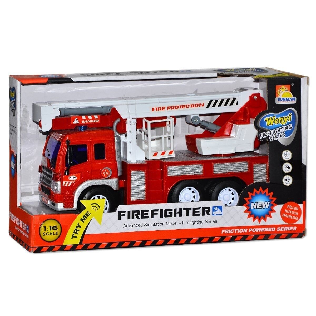 27 cm. uzunluğundaki itfaiye araçlarının; sesli ve ışık efektleri, hareketli tekerlekleri kaldırılıp 360 derece dönebilen kurtarma merdiveni, ayrıntılı detay, hareketli parçaları ve eğlenceli tasarım özelliklerine sahiptir.