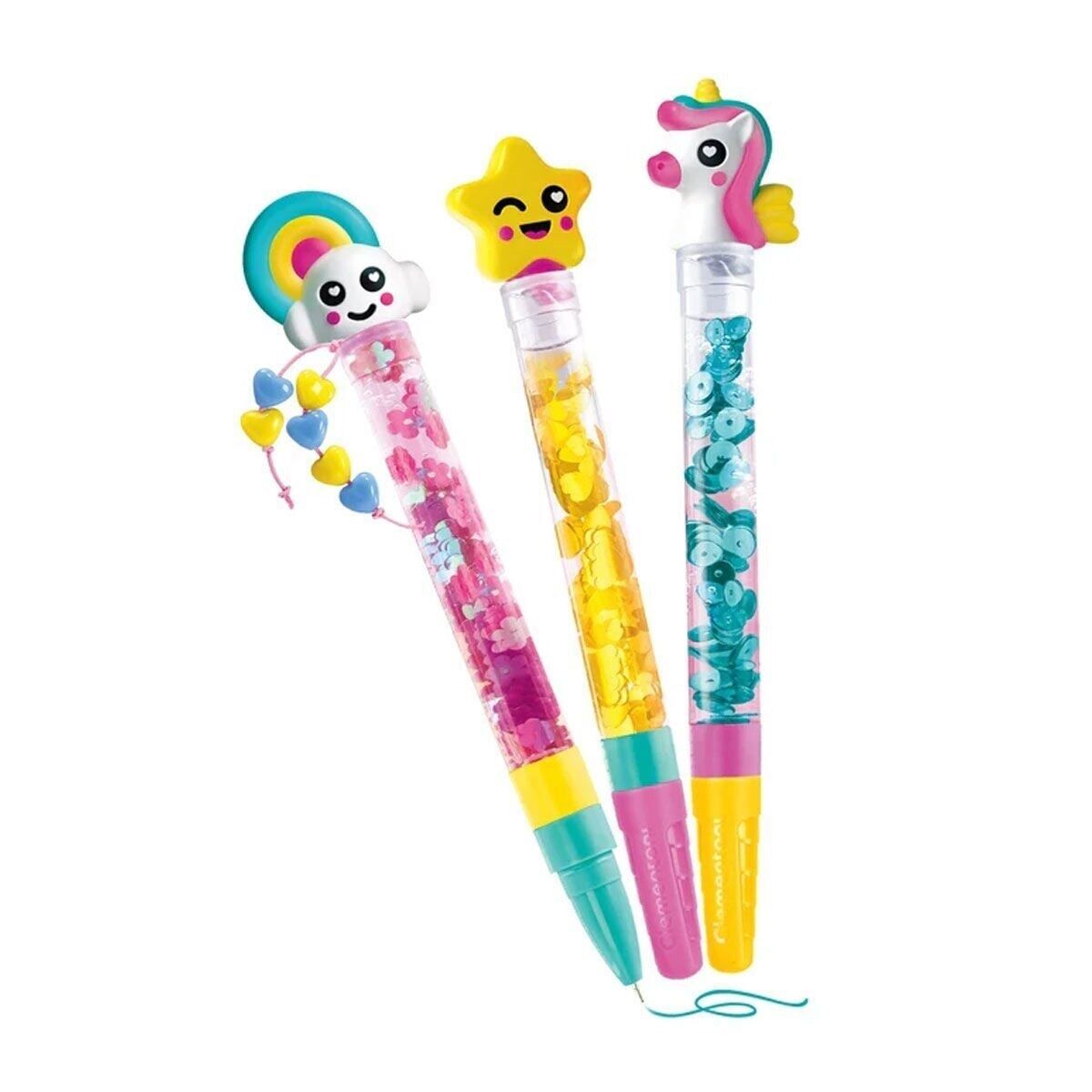 3 kalemi bir araya getirmenize ve bunları fantastik tarzda farklı süslemelerle kişiselleştirmenize olanak tanıyan orijinal bir yaratıcı kit, aşağıdakilerden oluşan pratik ve zengin bir kit: 3 kalem, 4 farklı renkte mürekkep, 3 karakter ve bunları üretmek için gerekli tüm araçlar. Birçok aksesuar ve dekorasyonla kendi kalemlerinizi yaratmanıza ve kişiselleştirmenize olanak tanıyan yeni bir Fikir oyunu, yalnızca kendi kaleminizi kişiselleştirmenize olanak tanıyan bir oyun. Bunu kendiniz yaratabilir ve hayal gücünüzü özgür bırakabilirsiniz.