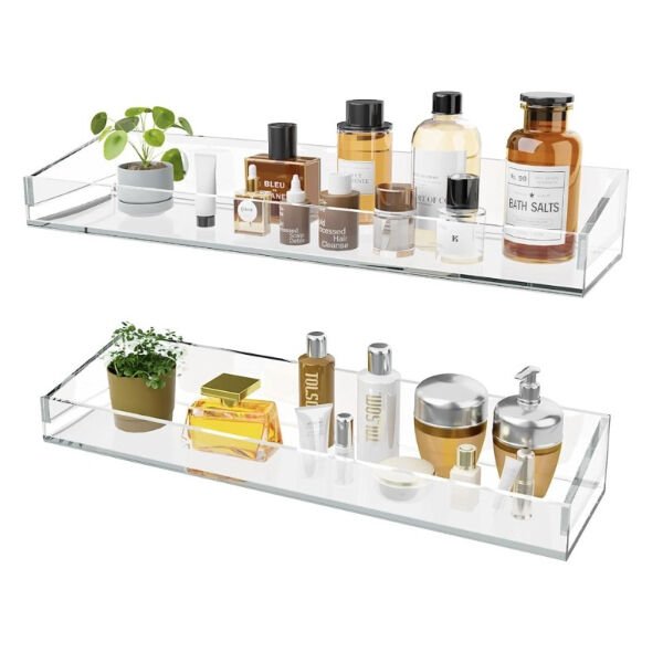 2'Lİ ŞIK VE MİNİMALİST TASARIMLI ŞEFFAF DUVAR RAFIÜrün ÖzellikleriŞık ve minimalist tasarımıyla dikkat çeken bu şeffaf duvar rafı, banyonuzda, mutfağınızda veya oturma odanızda modern bir görünüm yaratır. Tek katlı geniş yapısı sayesinde kozmetik, banyo malzemeleri, mutfak aksesuarları veya dekoratif objelerinizi düzenli bir şekilde saklamanızı sağlar. Sağlam ve dayanıklı malzemeden üretilmiş olup, duvara monte edilebilir tasarımıyla alan tasarrufu sunar. Transparan yapısı sayesinde bulunduğu ortama ferahlık ve zarafet katar.Paket İçeriği2 Adet Şeffaf Duvar Rafı