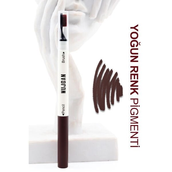 Kalemin arka kısmında yer alan kaşık fırça, kaşların taranarak şekillendirilmesini ve uygulama sırasında rengin kaş üzerinde dengeli dağılmasını destekler. Yoğun renk pigmentli yapısı sayesinde tek seferde net renk etkisi elde etmeye yardımcı olur. Günlük makyajda sade bir görünümden daha belirgin kaş stillerine kadar farklı uygulamalar için kullanılabilecek çok yönlü bir settir.