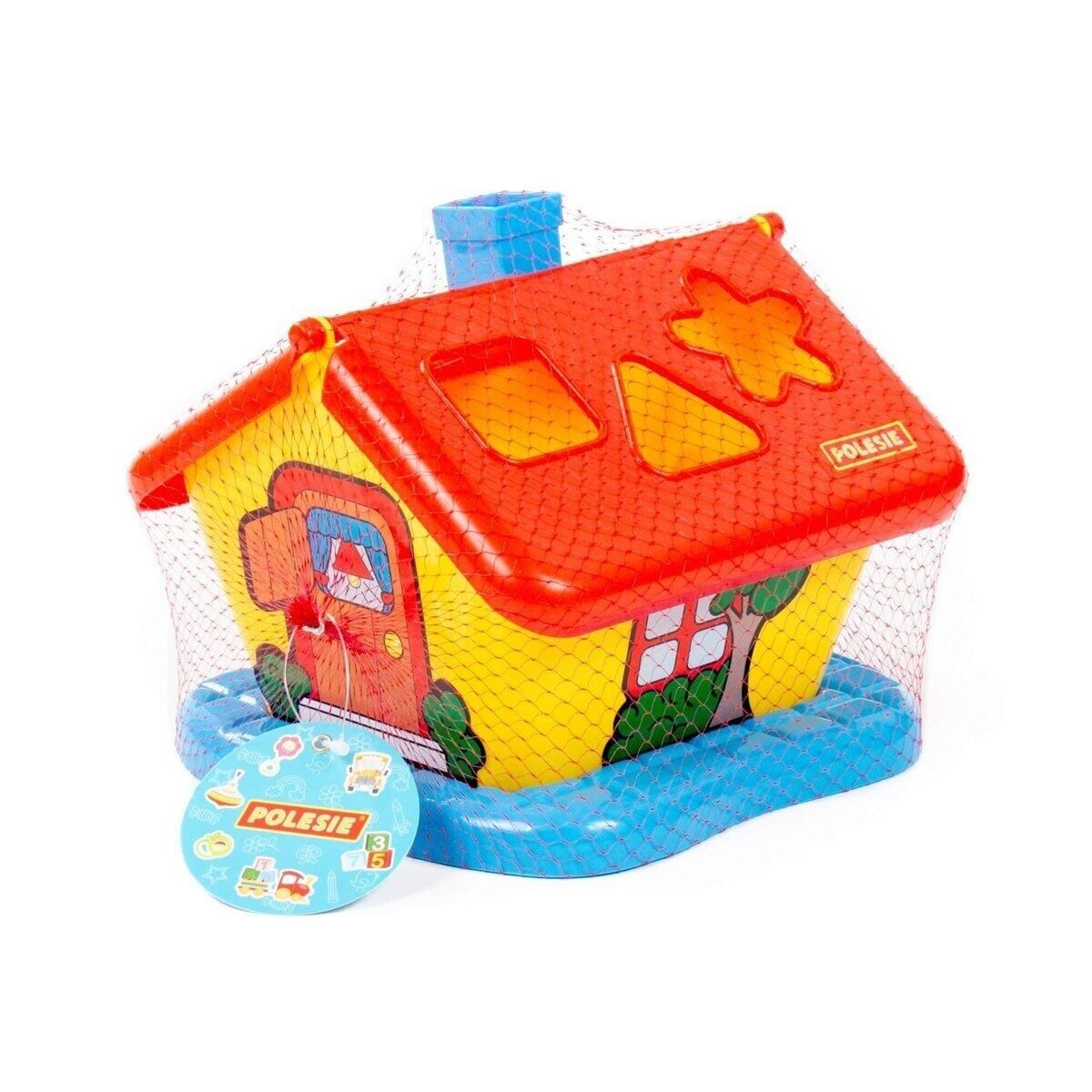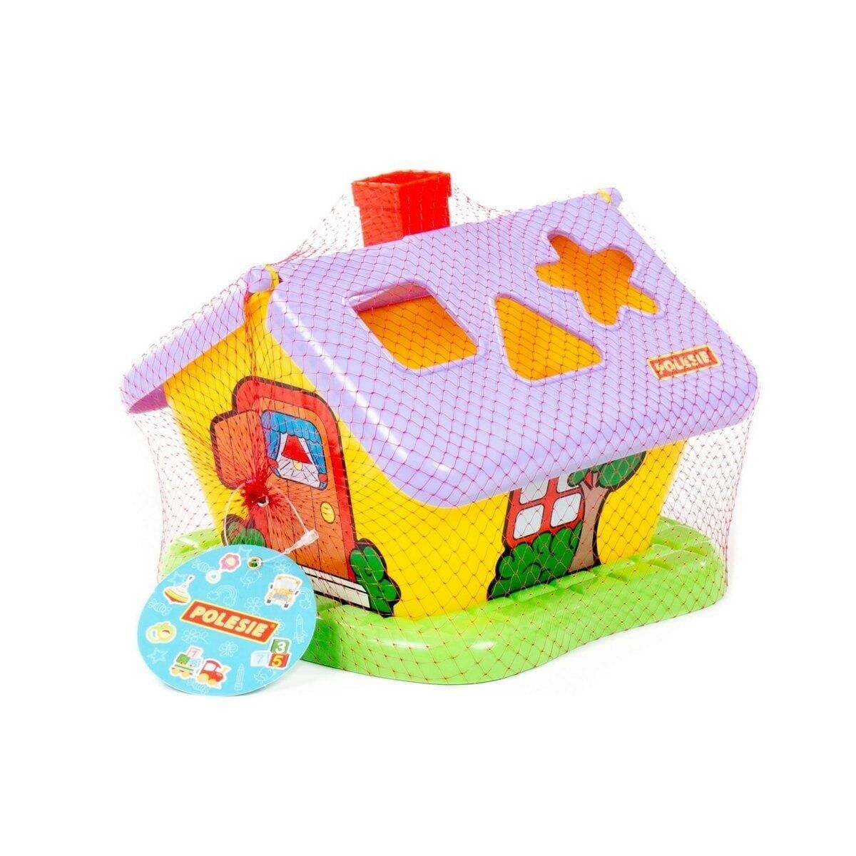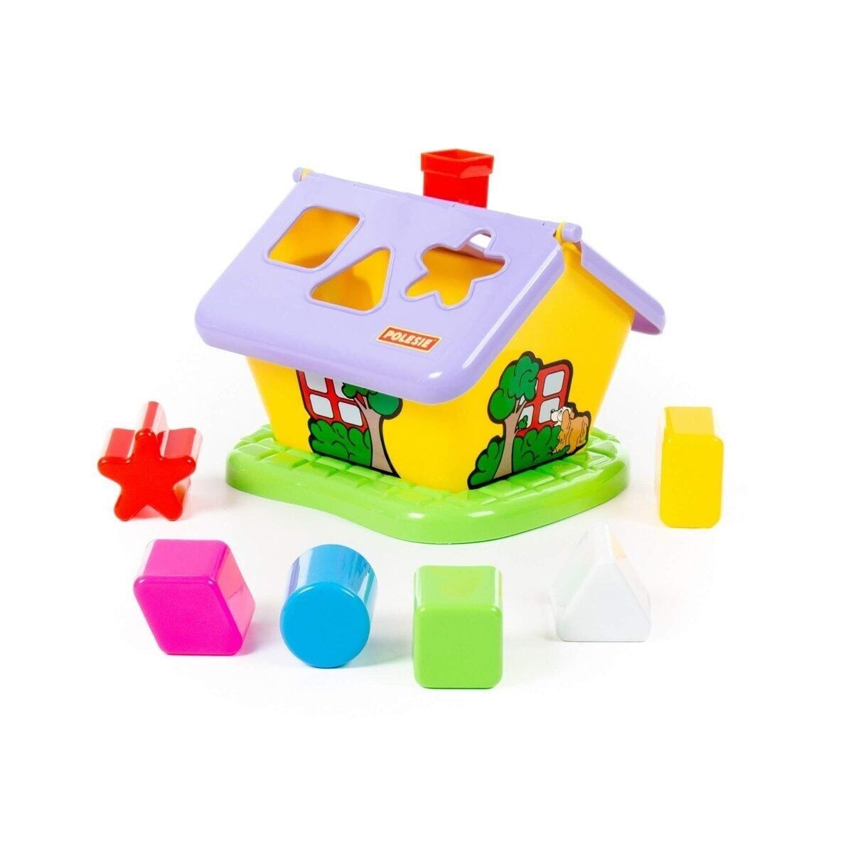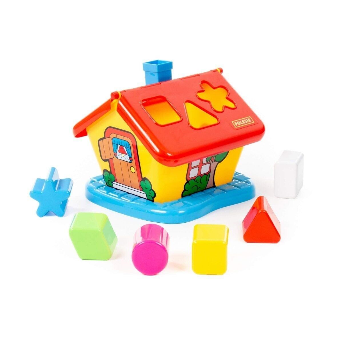 Evin çatısındaki görev, çocuğun şekilleri (6 adet), bulmaca delikleriyle eşleştirmesidir.