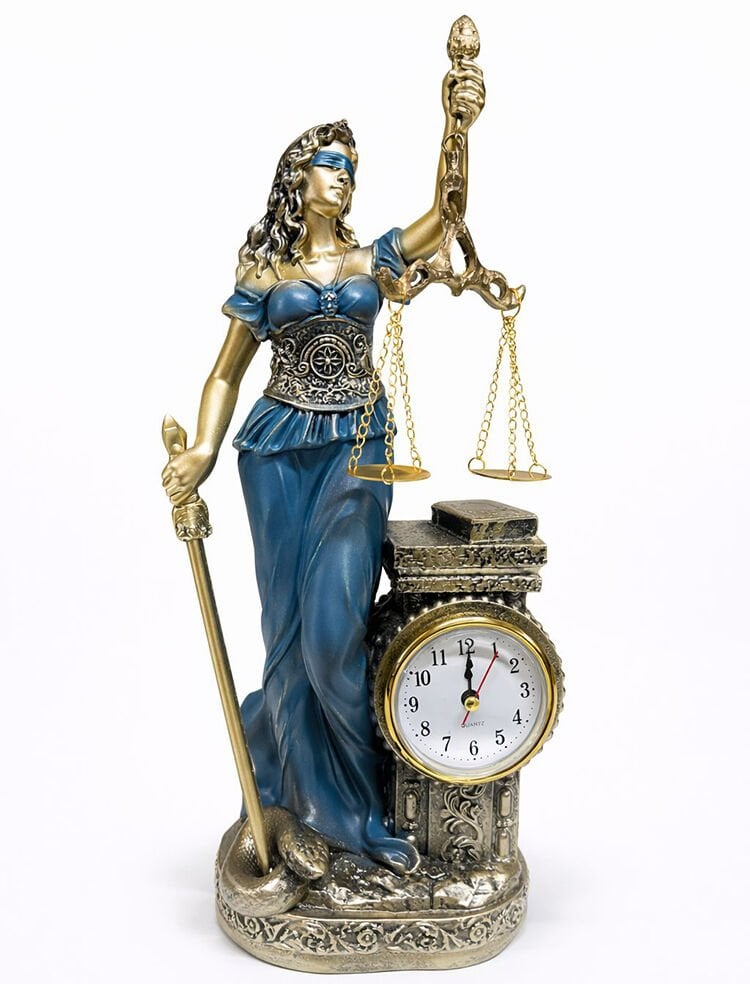 Adalet figürü ve entegre masa saati