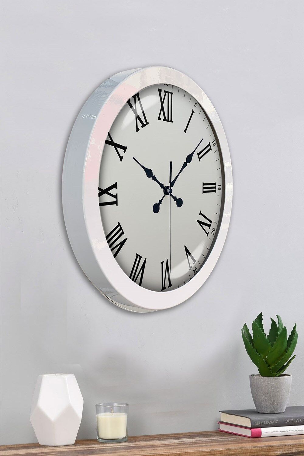 36 cm Beyaz Metal Roma Rakamlı Duvar Saati