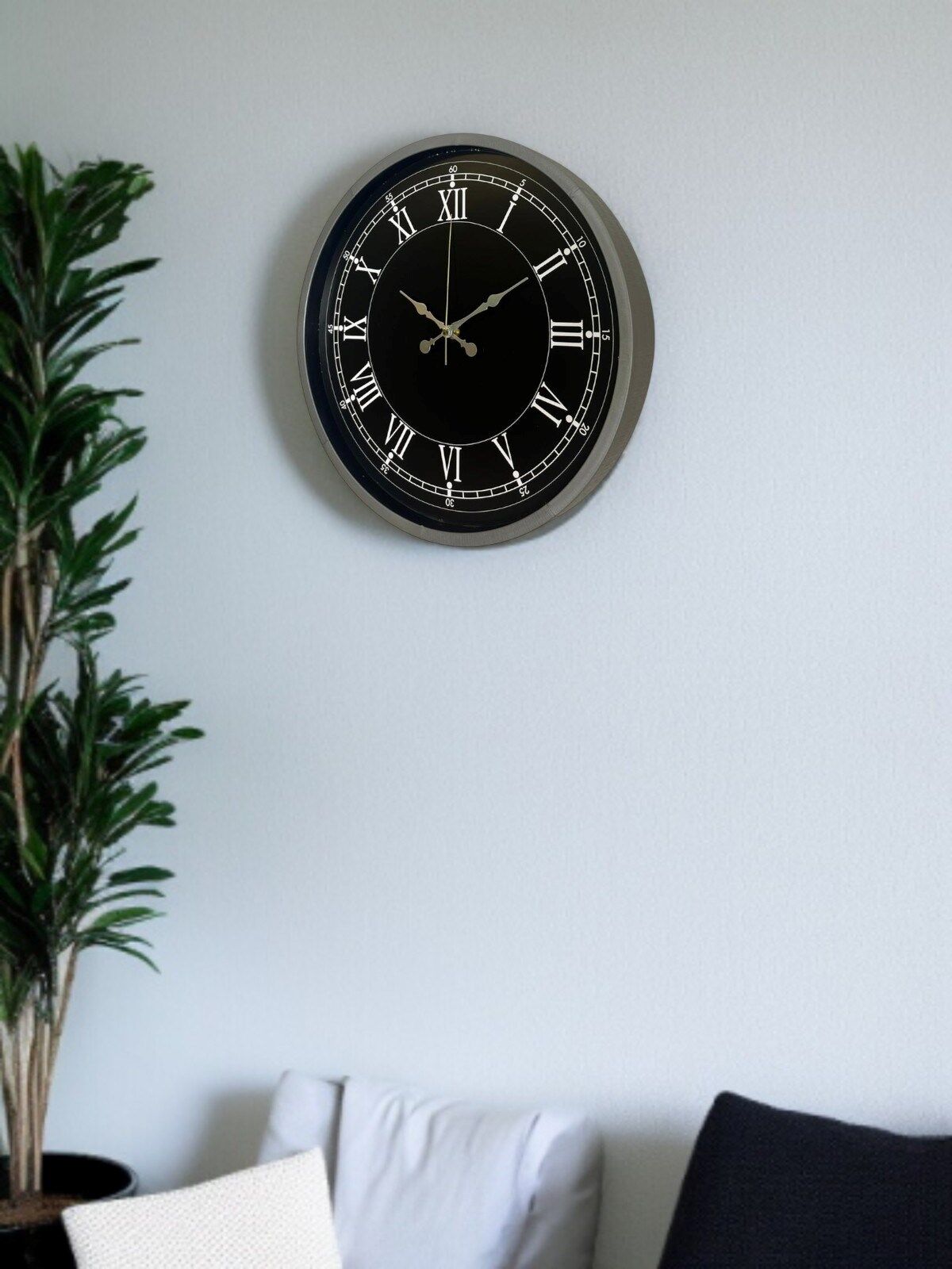 Klasik Roma rakamları, siyah kadranı ve gri çerçevesiyle tasarlanan bu 36 cm duvar saati; zamansız bir şıklık sunar. Net ve dengeli kadran yapısı sayesinde kolay okunur, dekorasyona güçlü bir karakter katar.