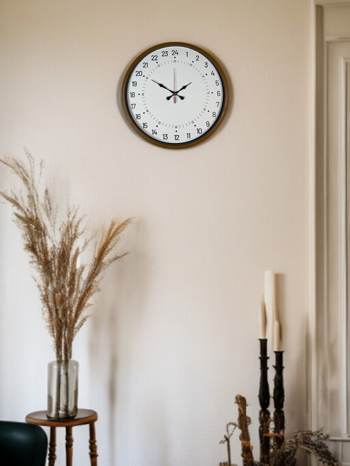 Bu özel tasarım duvar saati, klasik 12 saatlik saatlerden farklı olarak 24 saatlik zaman sistemine sahiptir. Kadran üzerinde yer alan 1–24 arası rakamlar sayesinde günün tamamı tek bir turda okunur. Bu özelliğiyle zamanı daha bilinçli ve net takip etmek isteyenler için sıra dışı ve fonksiyonel bir kullanım sunar.
