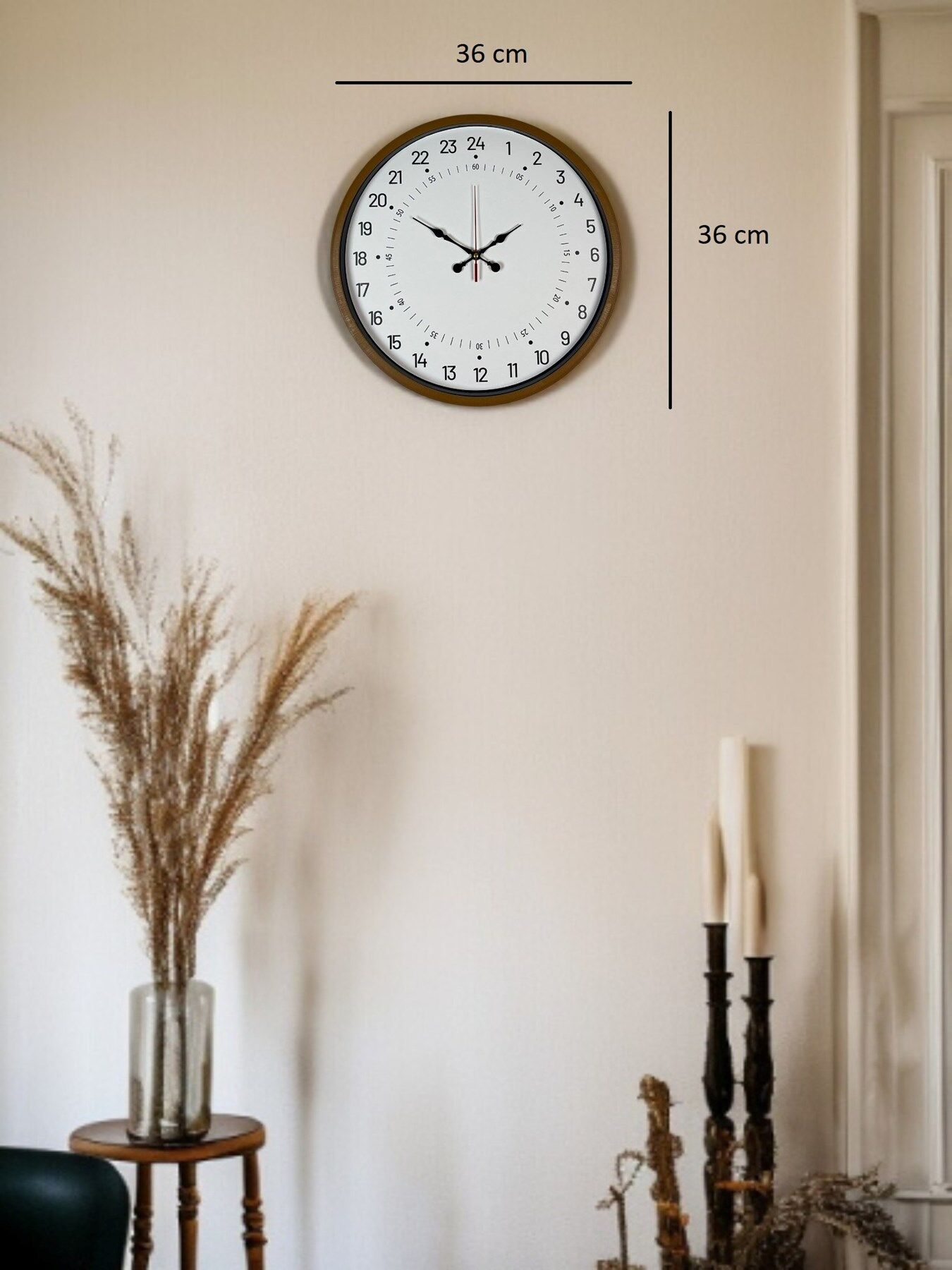 Kahverengi çerçevesi ve sade beyaz kadranı ile tasarlanan bu 36 cm duvar saati, hem modern hem de klasik mekânlara rahatlıkla uyum sağlar. Net ve okunaklı rakam yapısı, 24 saatlik sistemi ilk kez kullananlar için bile kolay bir algılama sunar. Özellikle vardiyalı çalışanlar, ofisler, eğitim alanları ve farklı tasarımlardan hoşlanan kullanıcılar için ideal bir modeldir.