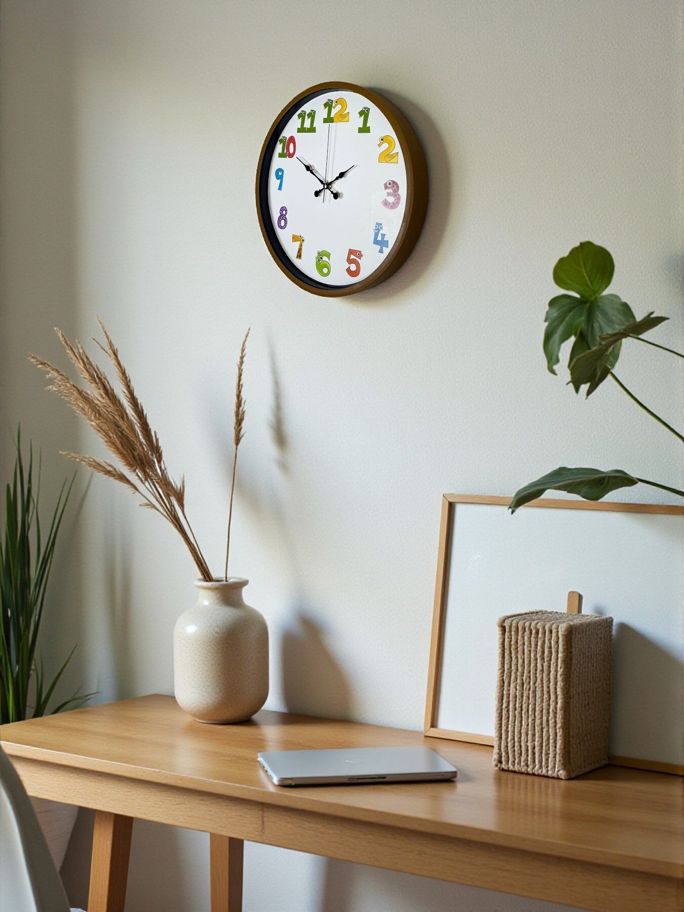 Renkli ve eğlenceli rakam tasarımlarıyla çocuk odalarına neşe katan bu 36 cm duvar saati, sessiz çalışması ve canlı görünümüyle hem dekoratif hem öğretici bir üründür. Çocukların saat öğrenmesini kolaylaştıran sevimli rakam karakterleri ile odalara enerji katar.