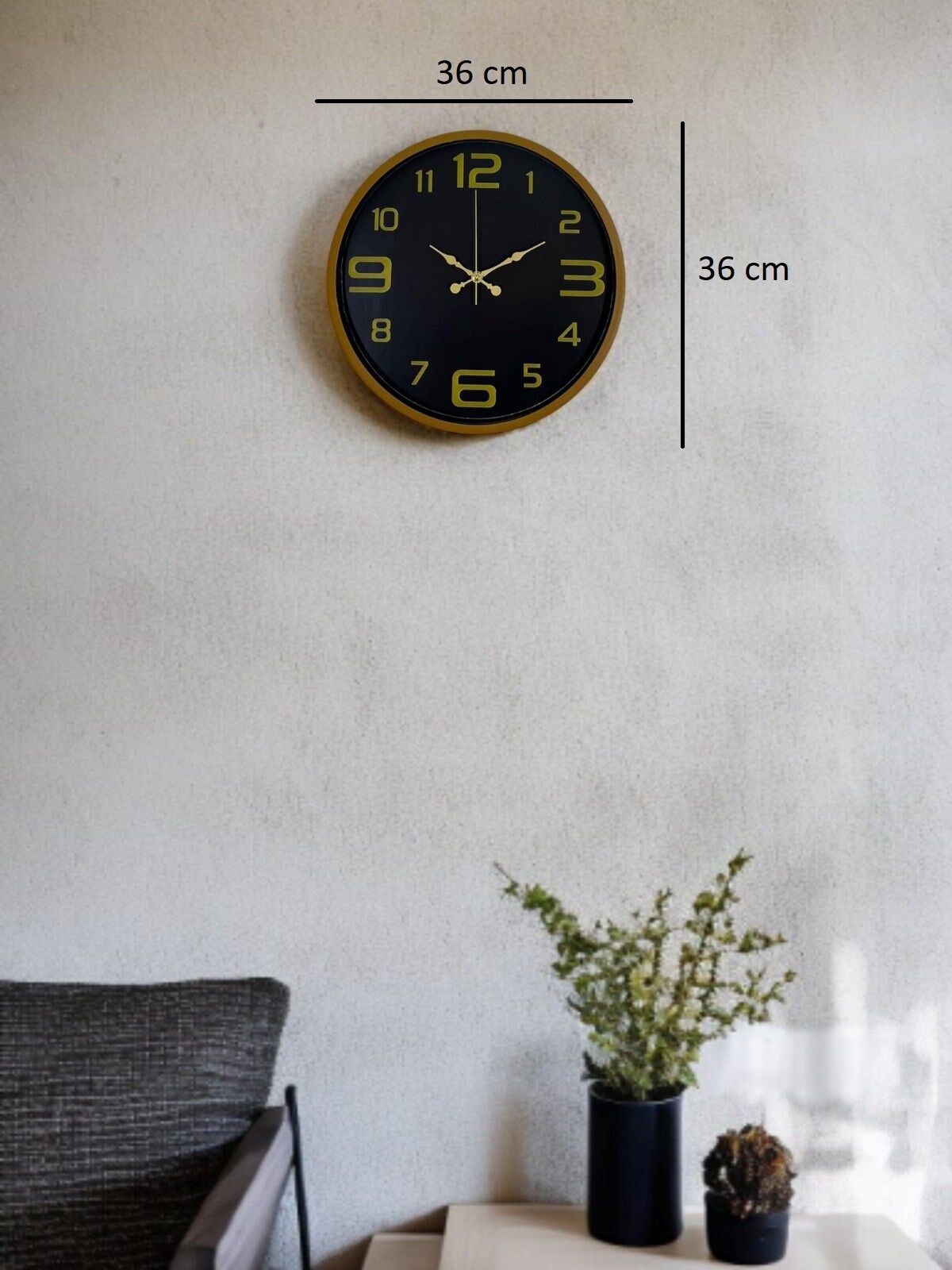 Siyah kadranı, kahverengi çerçevesi ve gold tonlu rakamlarıyla tasarlanan bu 36 cm duvar saati; bulunduğu ortama sıcak ve şık bir hava katar. Klasik çizgilerle modern detayların uyumunu sunan tasarımı sayesinde hem ev hem de ofis dekorasyonlarında rahatlıkla kullanılabilir.