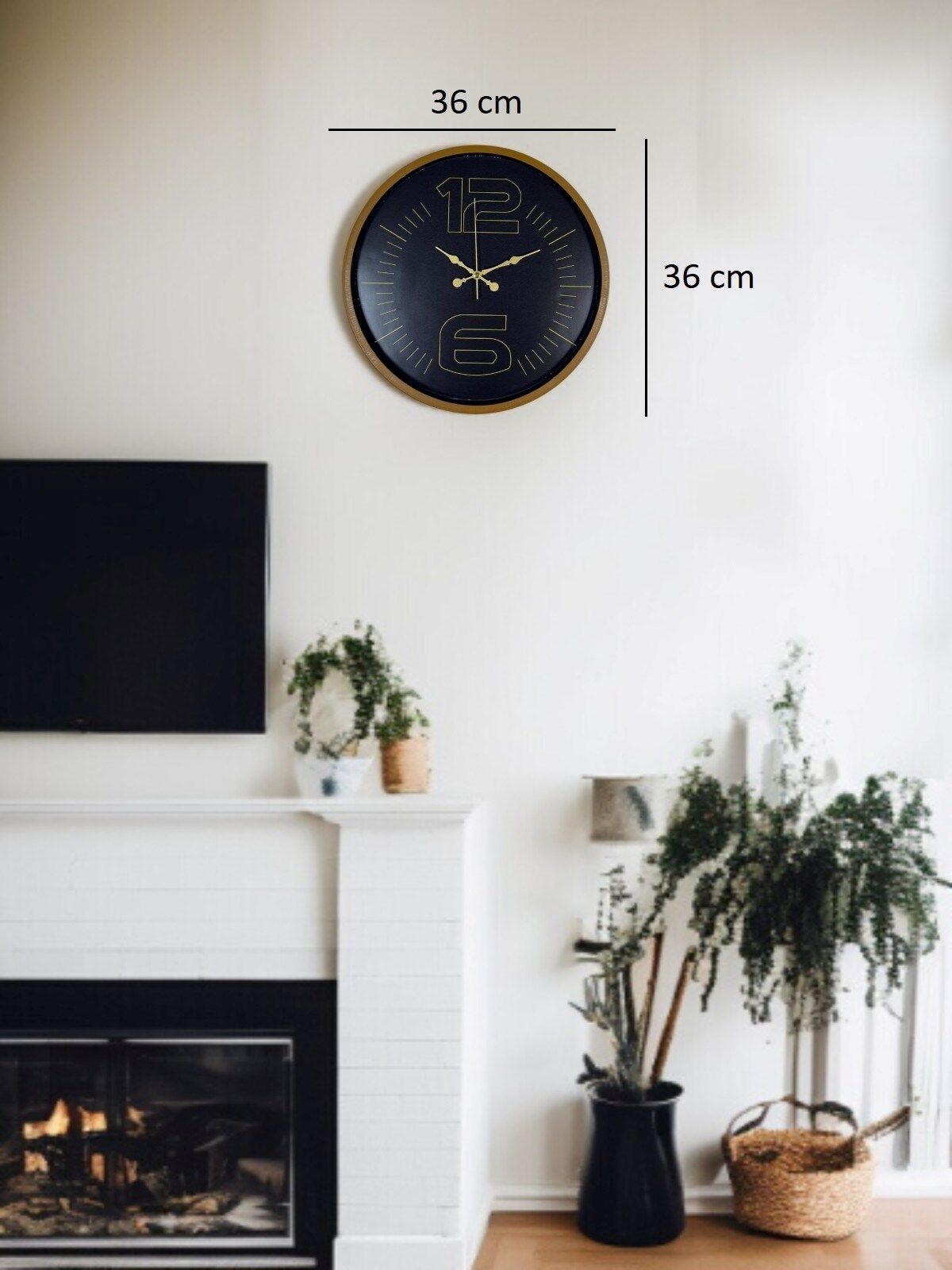 Siyah kadranı, kahverengi çerçevesi ve gold tonlu rakamlarıyla tasarlanan bu 36 cm duvar saati; bulunduğu ortama sıcak ve şık bir hava katar. Klasik çizgilerle modern detayların uyumunu sunan tasarımı sayesinde hem ev hem de ofis dekorasyonlarında rahatlıkla kullanılabilir.