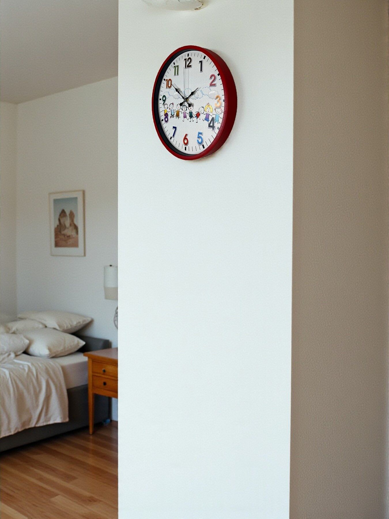 Canlı kırmızı çerçevesi ve sevimli çizimlerle süslenmiş kadranı sayesinde bu 36 cm çocuk odası duvar saati, çocuk odalarına neşe ve enerji katar. Renkli ve büyük rakamları, çocukların saatleri kolayca öğrenmesine yardımcı olurken; mutlu çocuk figürleri ile eğlenceli bir atmosfer oluşturur. Hem dekoratif hem de öğretici bir tasarıma sahiptir.