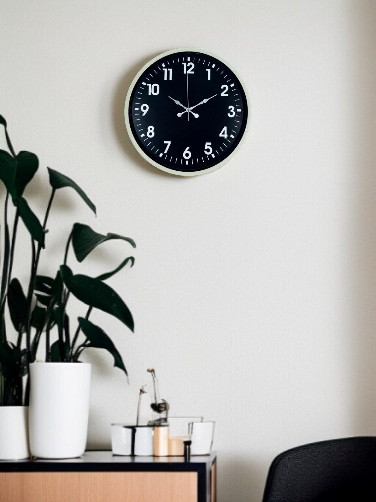 Krem renkli çerçevesi ve siyah zemin üzerindeki büyük beyaz rakamlarıyla tasarlanan bu 36 cm duvar saati, yüksek kontrastlı kadranı sayesinde zamanı tek bakışta net şekilde okumayı sağlar. Sade ve zamansız tasarımı, modern ve klasik dekorasyonlarla uyum içinde kullanıma olanak tanır. Salon, mutfak, ofis ve çalışma alanlarında ferah ve düzenli bir görünüm sunar.