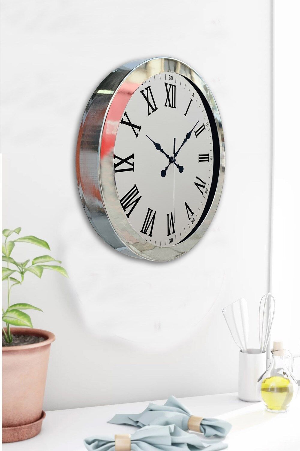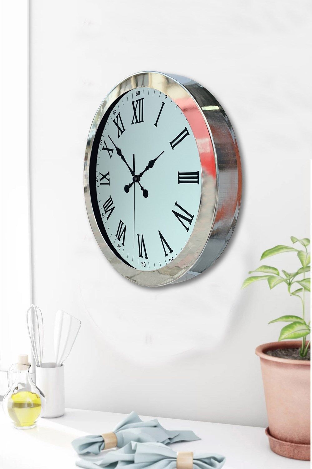 36 cm Krom Metal Roma Rakamli Duvar Saati