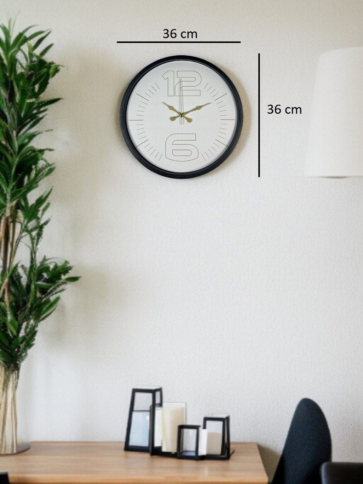 Siyah çerçevesi ve açık renk kadranıyla kontrast oluşturan bu 36 cm duvar saati, modern dekorasyon anlayışını yansıtan özel bir tasarıma sahiptir. Büyük 12 ve 6 rakam detayı, saate karakter kazandırırken minimal çizgilerle desteklenen kadran yapısı sayesinde sade ama güçlü bir görünüm sunar.
