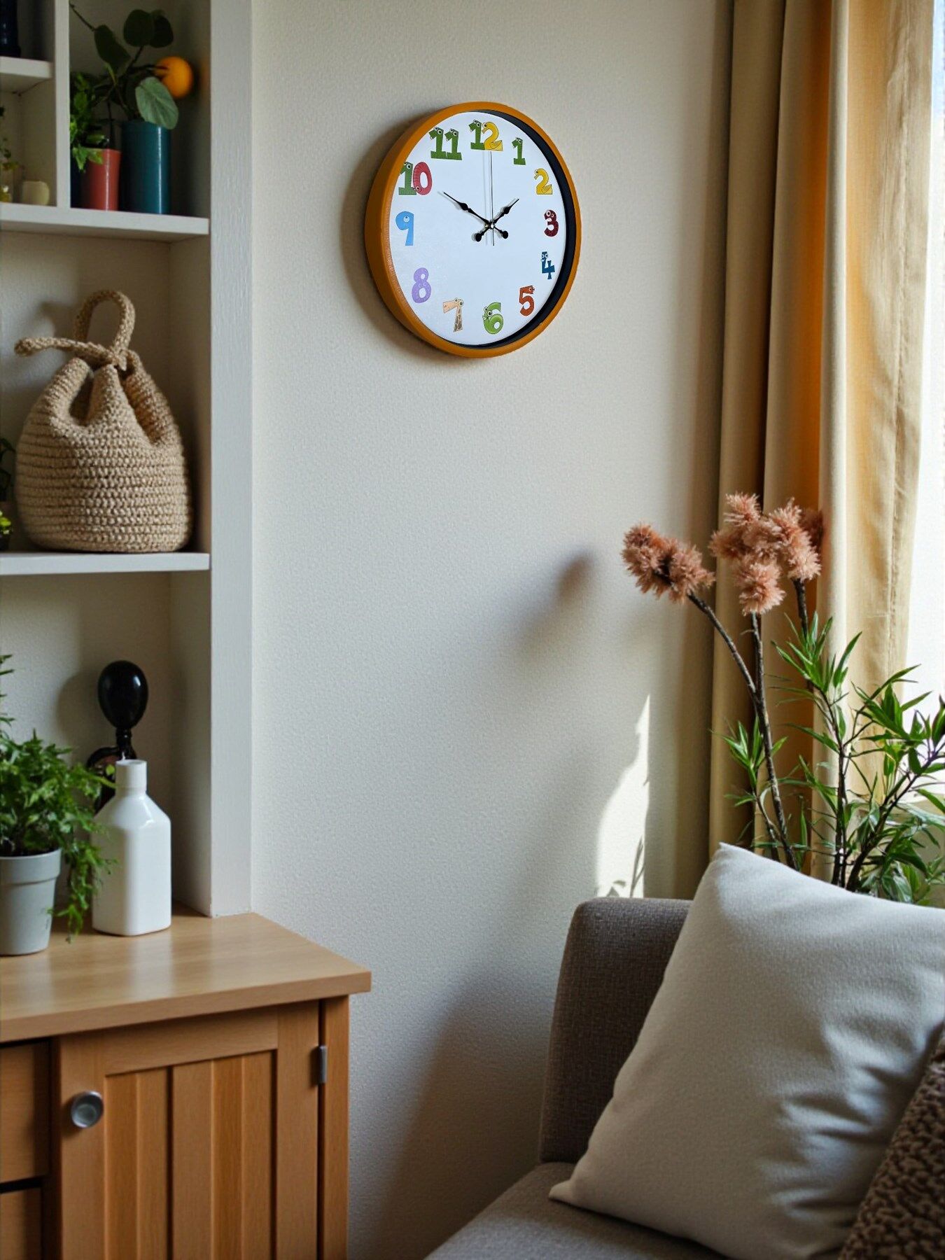 Renkli ve eğlenceli rakam tasarımlarıyla çocuk odalarına neşe katan bu 36 cm duvar saati, sessiz çalışması ve canlı görünümüyle hem dekoratif hem öğretici bir üründür. Çocukların saat öğrenmesini kolaylaştıran sevimli rakam karakterleri ile odalara enerji katar.