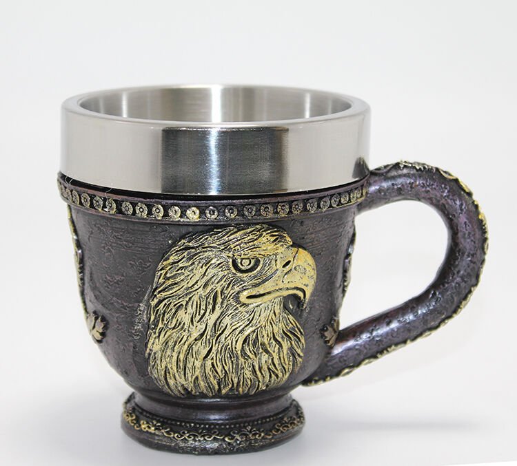 3D Kabartmalı Kartal Büstü Paslanmaz Çelik Kupa Bardak