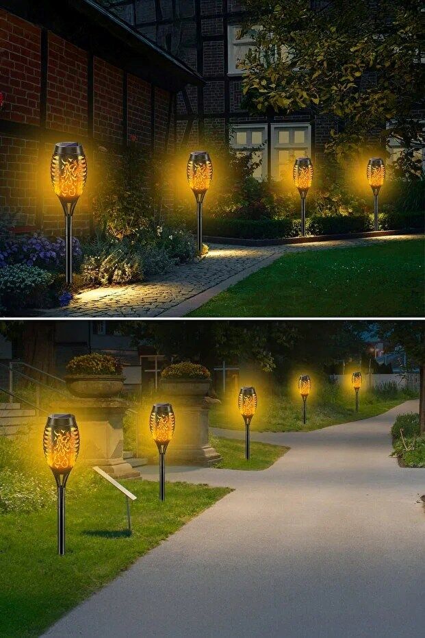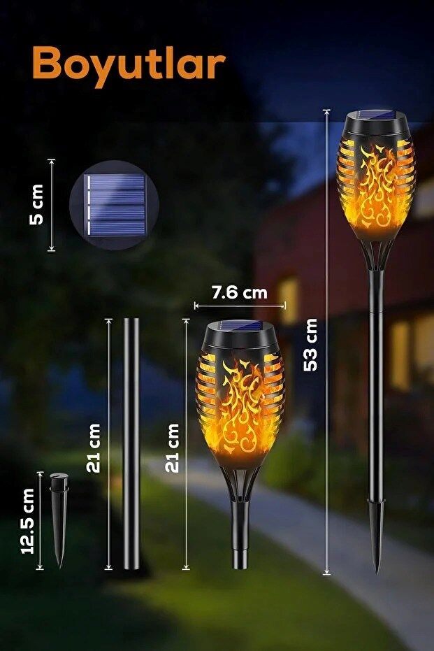 Enerji tasarrufu sağlayan bu solar meşaleler, gün boyunca güneş ışığını depolayarak akşamları otomatik olarak yanar. Kurulumunun kolay olması sayesinde herhangi bir teknik bilgiye ihtiyaç duymadan bahçenize veya dış mekanınıza estetik bir dokunuş katabilirsiniz. Doğal alev görünümü sayesinde ortamda sıcak ve samimi bir ışık sağlar.
