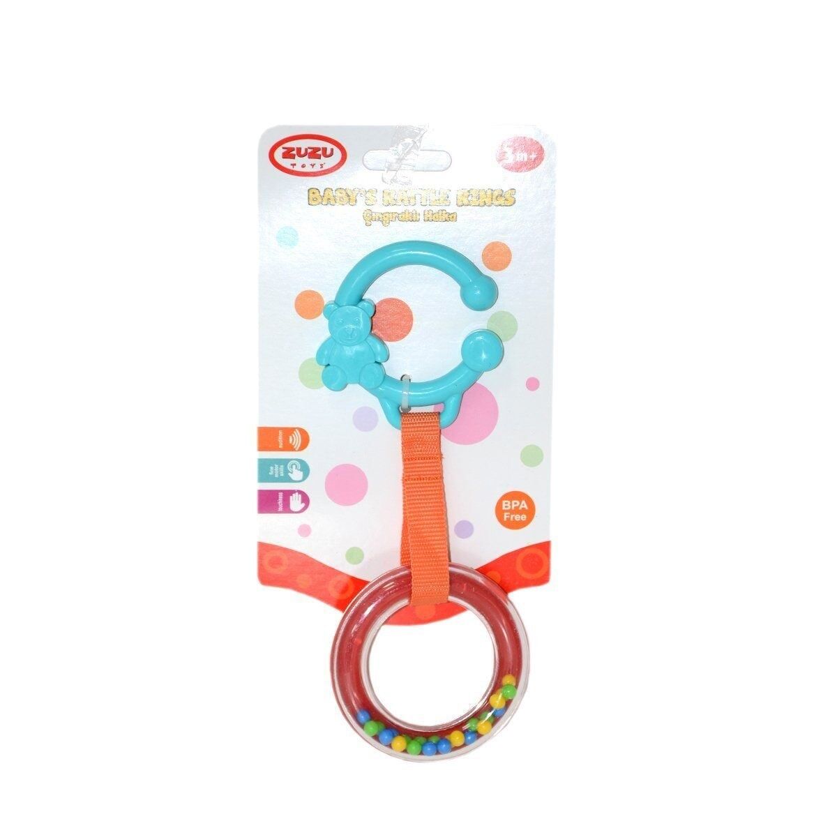 Çıngıraklı halka bebek arabasına, beşiğe ve oto koltuğuna kolayca asılabilir.