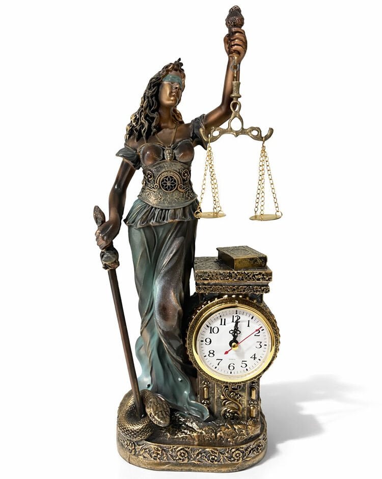 Adalet figürü ve entegre masa saati