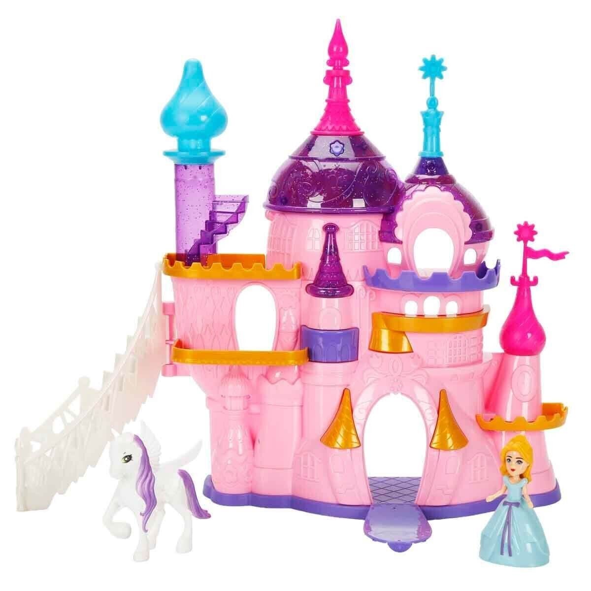 Bir varmış bir yokmuş… Pembe kuleleri gökyüzüne uzanan, ışıkları parıldayan büyülü bir şato varmış. Bu şatonun içinde seni birbirinden güzel detaylar beklermiş… Zarif beyaz piyano başında tatlı melodilere eşlik eder gibi yapabilir, güzellik masasındaki ayna ve tarakla prenses bebeğini büyük baloya hazırlayabilirmişsin. Yatağında dinlendirebilir, koltuklarda hayaller kurabilir, masa ve sandalyelerde şatoya yakışır şekilde hazırlayabilirmişsin.