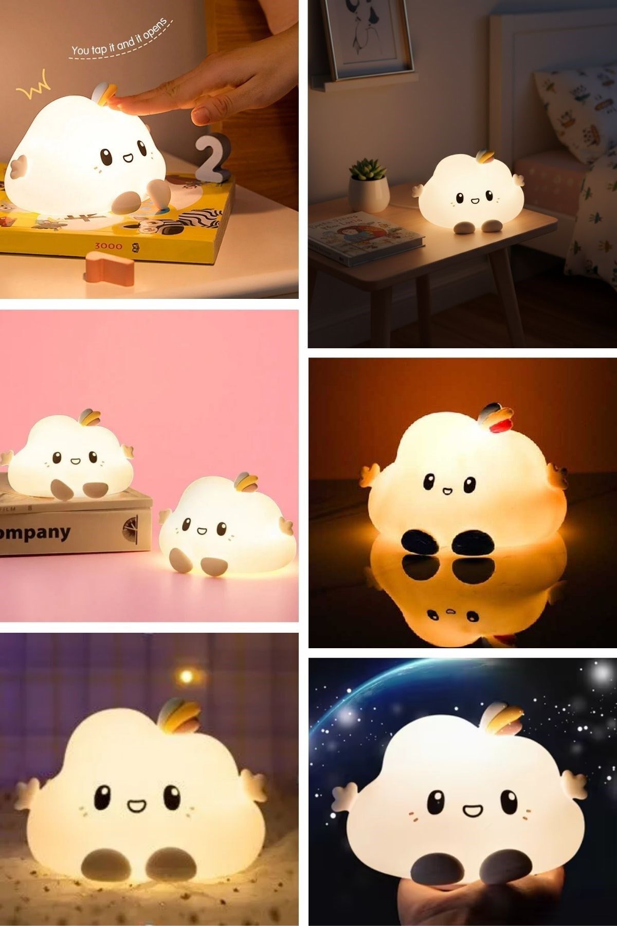 Bulut Figürlü Pofuduk LED Gece Lambası – Yumuşak Dokulu Masaüstü Aydınlatma, Çocuk Odası ve Dekoratif Şarjlı Ortam Işığı