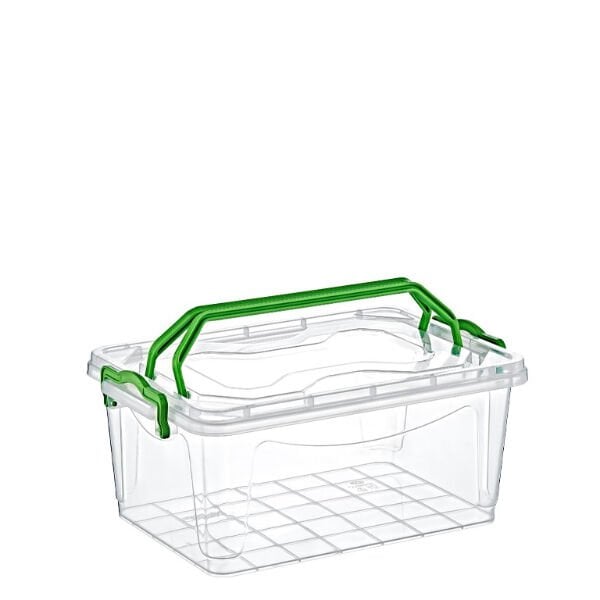 5 lt Saklama Kabı, geniş hacmi ve kapaklı tasarımı ile hem mutfakta hem ev içinde çok amaçlı kullanım sunan pratik bir üründür. 5 litre kapasitesi sayesinde bakliyat, kuruyemiş, kuru gıda ve farklı ev eşyalarının düzenli şekilde muhafaza edilmesine yardımcı olur. Şeffaf gövde yapısı sayesinde içerisindeki ürünü kolayca görmenizi sağlar ve dolap içi düzen oluşturur. Kapaklı ve taşıma kulplu tasarımı ile güvenli kapama imkânı sunarken pratik taşıma avantajı sağlar. Dayanıklı plastik yapısı ile uzun süreli kullanıma uygun olan bu 5 litre saklama kabı, hem ev hem ofis ortamında ideal bir çok amaçlı saklama çözümü sunar.