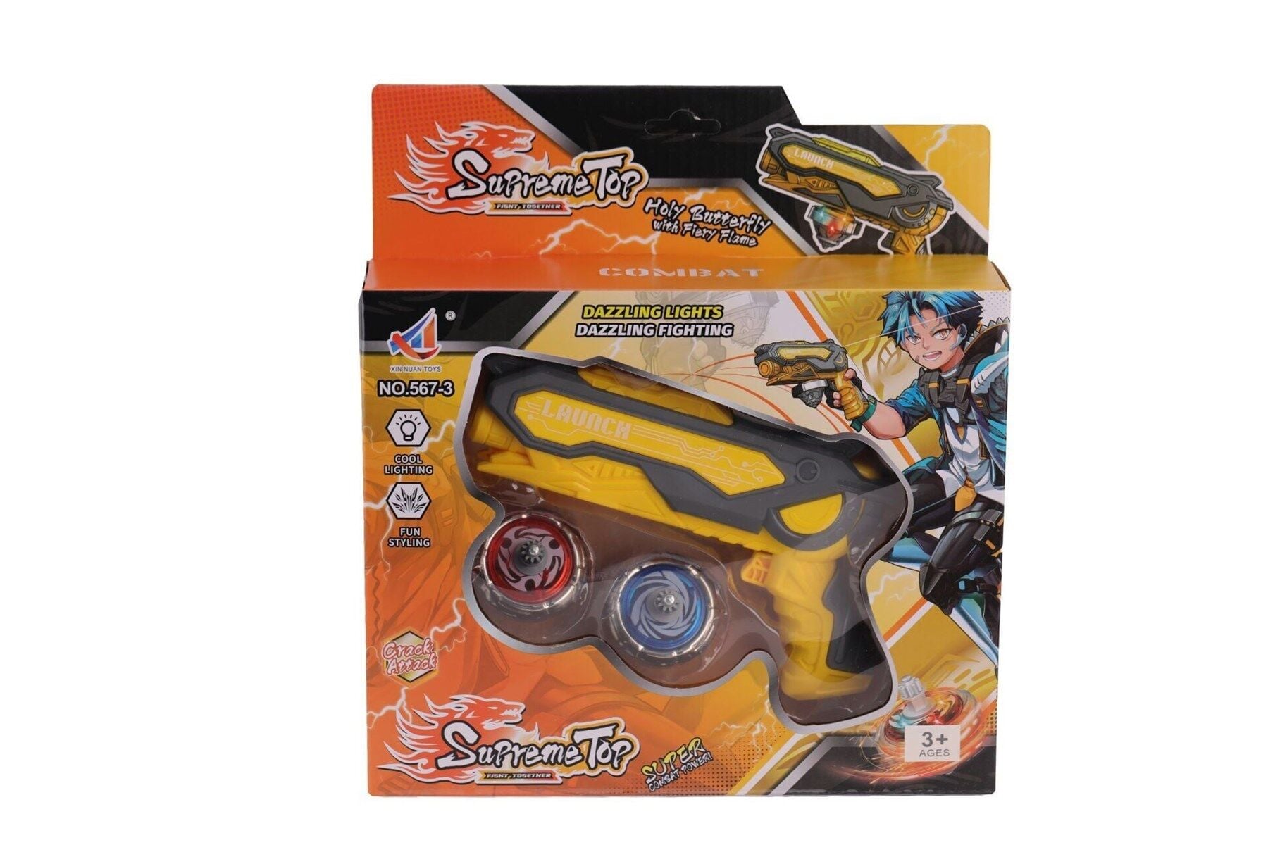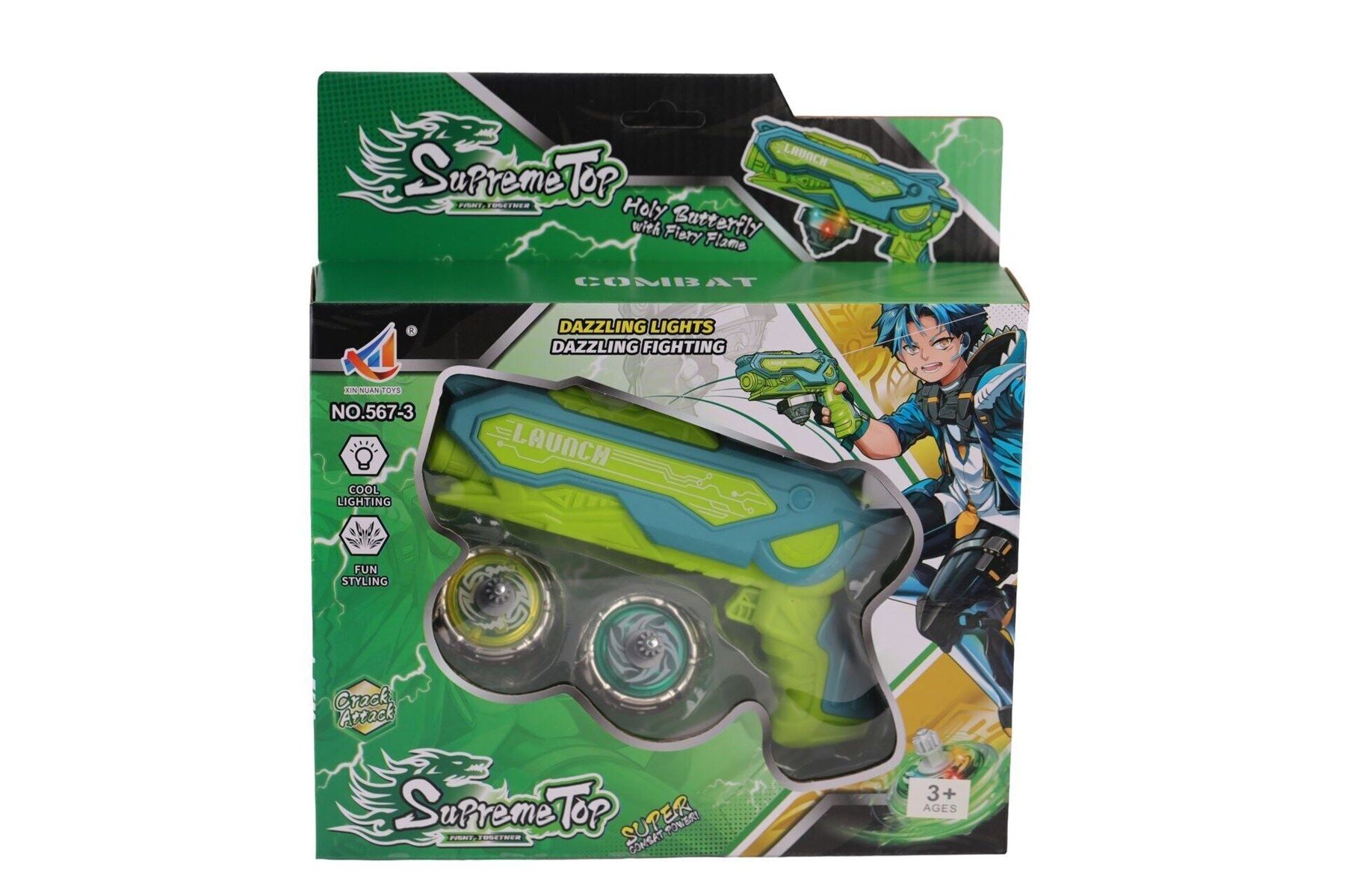 Kutulu Işıklı Süper Topaçlar, dönerken renkli ışıklar saçan eğlenceli oyuncaklardır.