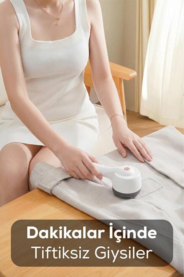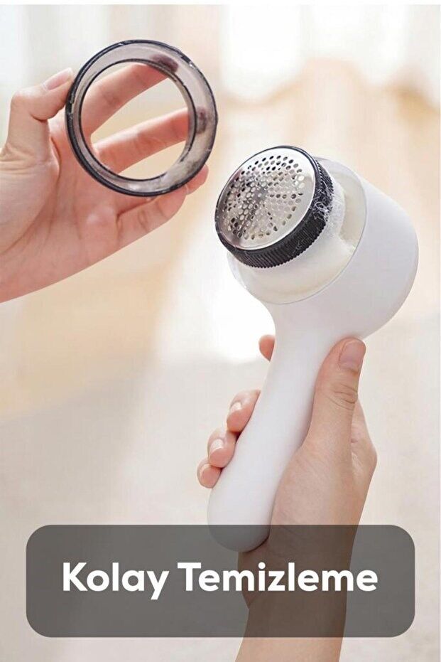 6 Bıçaklı Şarjlı Tüy ve Tiftik Temizleme Makinesi, kıyafetlerinizde oluşan tüy ve tiftiklerin hızlı ve etkili bir şekilde temizlenmesini sağlar. Beyaz ve yuvarlak tasarımı ile ergonomik bir kullanım sunar, elinizde rahatça tutabilirsiniz.