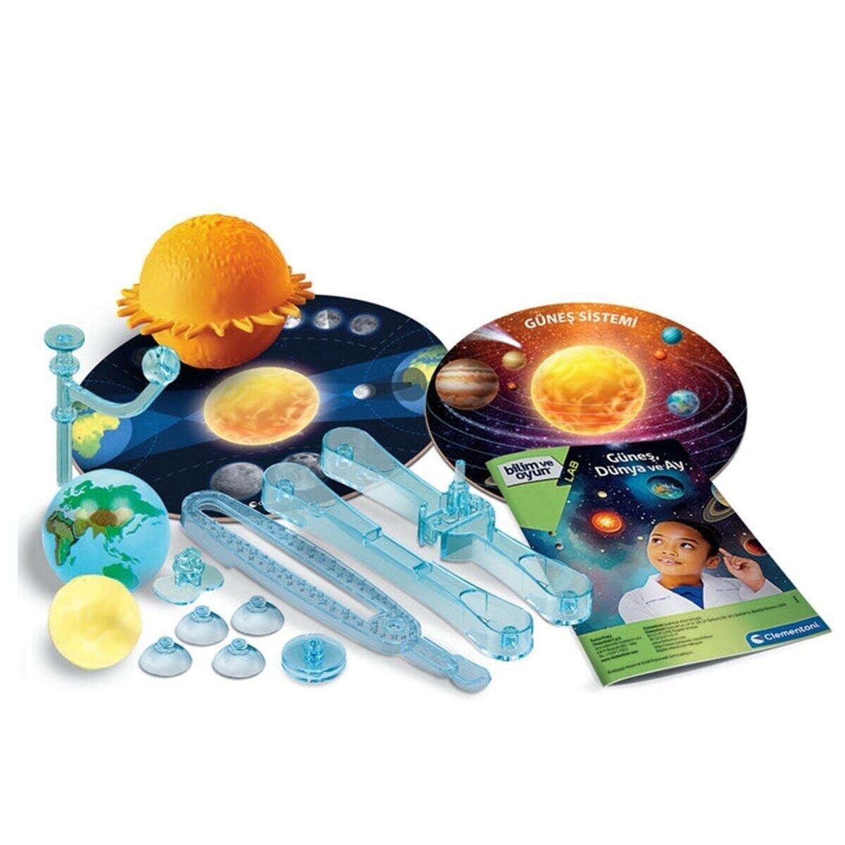 Set, hareketlerini ve güneş ve ay tutulmaları gibi olayları basit ve anlaşılması kolay bir şekilde incelemek için Güneş, Dünya ve Ay'ın bir modelini içerir.