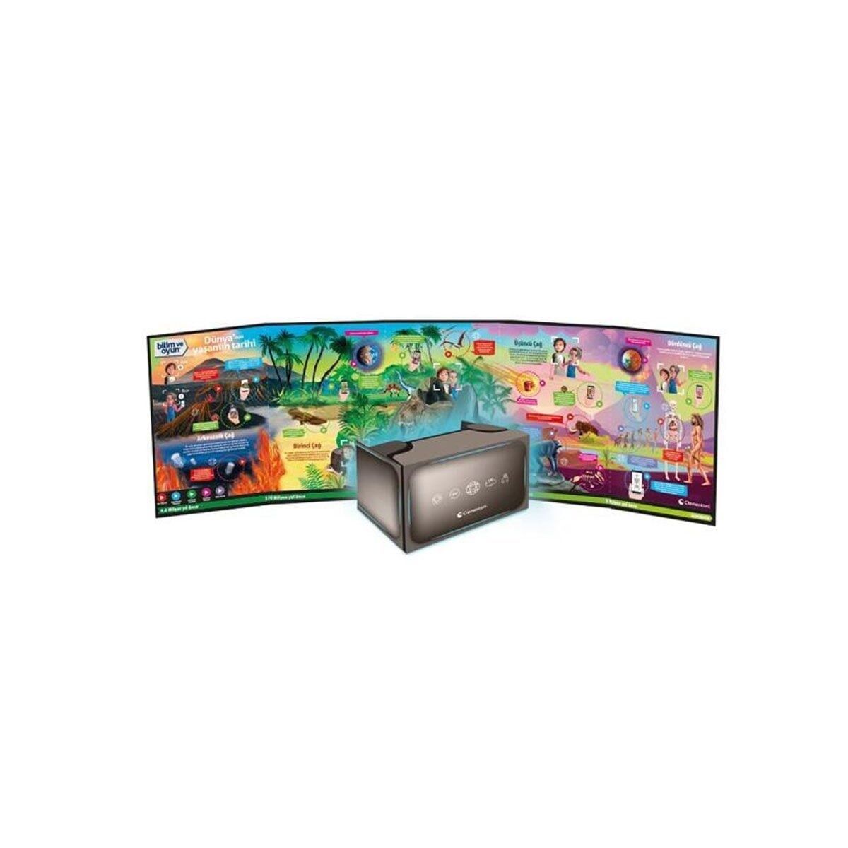 Yaşamın Dünya'da ilk kez ne zaman ortaya çıktığını ve jeolojik çağlar boyunca nasıl geliştiğini keşfetmek için iki karakterin eşlik ettiği ve zamanın içinde geçen büyüleyici bir yolculuk. Gerçek bir sanal gerçeklik gözlüğü içerir! İçerik listesi: Sanal gerçeklik gözlüğü, T-rex iskeleti, Organlı insan iskeleti, Gerçek bir meteoritli tuğla, Çekiç ve keski, Yanardağ için ısıyla şekillendirilmiş parça, Alçı taşı poşeti, Sodyum bikarbonat, Ölçekli deney kabı, Karıştırıcı, Spatula, Çay kaşığı, Tempera boyaları, Gıda boyası, Karıştırılmış deneyim tahtası, Kartlar, Harita/Talimatlar.