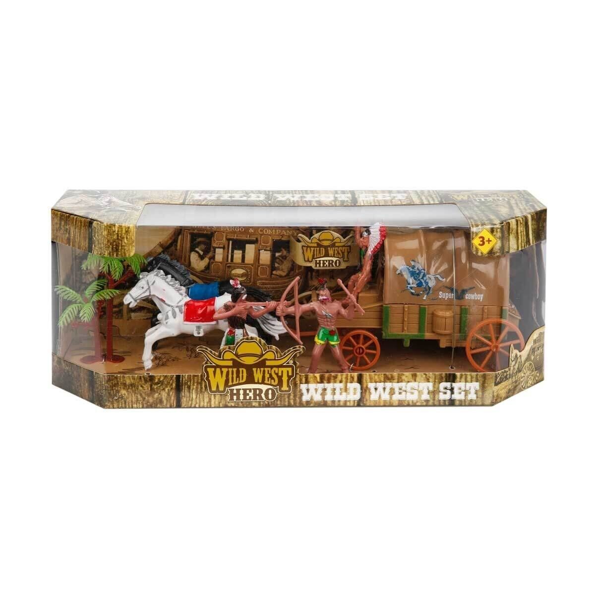 Set içerisinde; at arabası, 2 adet at figürü ve ürünün temasına uygun olan Kızılderili veya kovboy figürleri yer almaktadır.