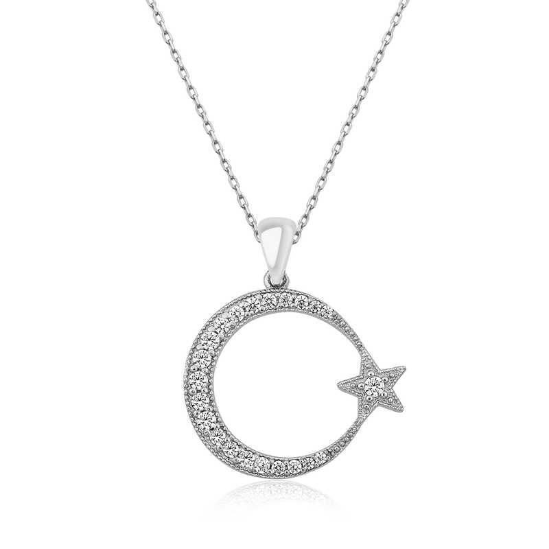 Türk Bayrağının rengini şehitlerin kanından ilhamını da kan gölüne yansıyan ay ve yıldızdan aldığını biliyoruz. Bayrağın taşıdığı kutsal anlamı teninizde taşımak ve sevdiklerinizle paylaşmak için kaçırılmayacak bir fırsat. 925 ayar gümüşten imal edilmiştir. Gümüş üzerine rodyum kaplama yapılmıştır. Rodyum kaplama yapılan kolye modelleri parlaklığını uzun süre muhafaza eder ve oksitlenmesi gecikir. Üzerinde bulunan taşlar zirkon'dur. Tüm ay yıldız kolye modellerinde olduğu gibi ay yıldız kolye de el emeği ile üretilmiştir. Gümüş ve değerli taşlar nedeniyle belirtilen ortalama ürün ağırlığında ± %10 sapma olabilmektedir.