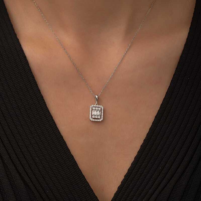 Gümüş Baget Taşlı Kolye