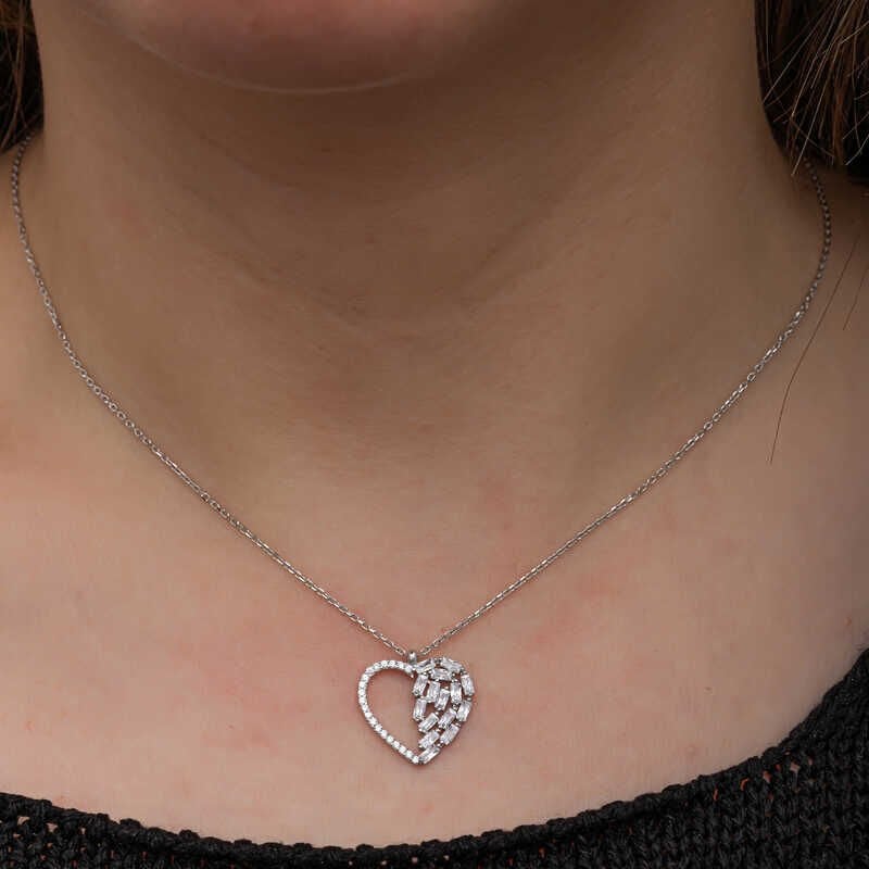 Gümüş Baget Taşlı Kalp Kadın Kolye