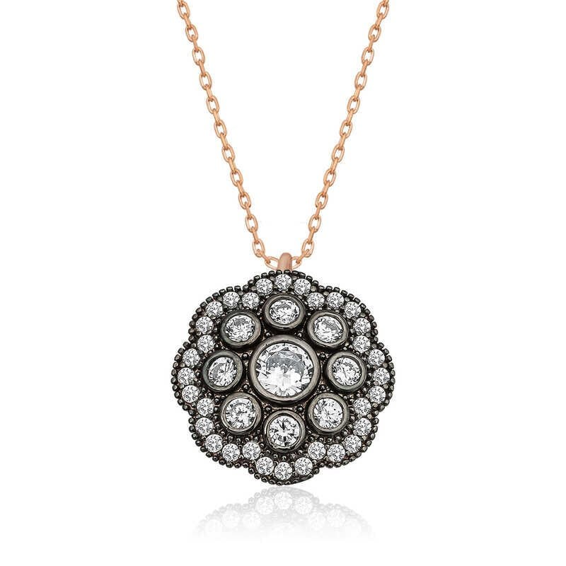 925 Ayar Gümüş Çiçek Desenli Elmas Montür Kadın Gümüş Kolye T5095 (491491)