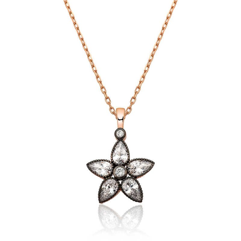 925 Ayar Gümüş Elmas Montür Çiçek Kadın Gümüş Kolye PT26109135 (491491)