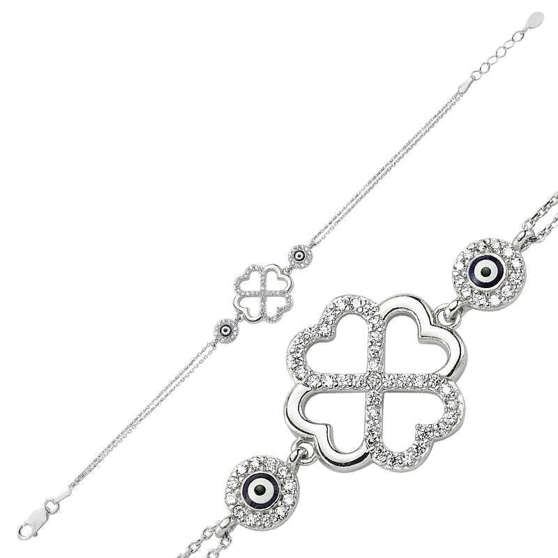 Gümüş Kalpli Yonca Bayan Bileklik
