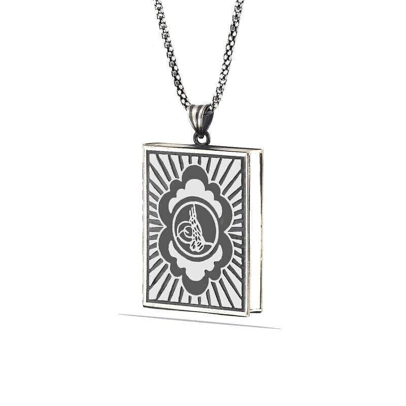 925 Ayar Gümüş Kare İçi Açılabilen Tuğra Muskalık Gümüş Kolye T6005 (491491)