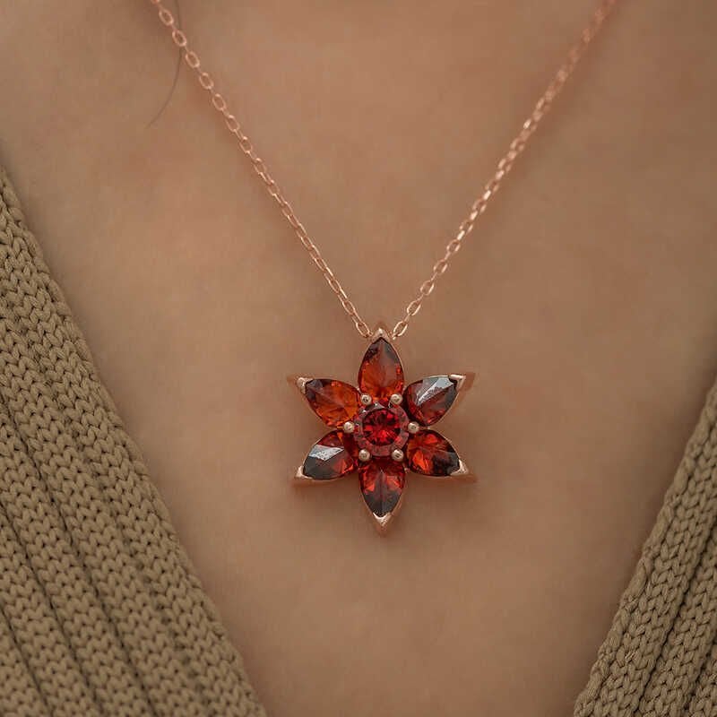 Gümüş Kırmızı Çiçek Kolye