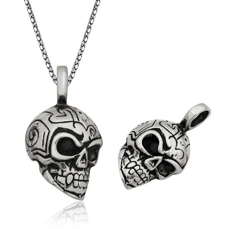 Kuru kafanın gizem ve ölüm anlamı vardır. Kuru kafa erkek kolye modeli 925 ayar gümüşten imal edilmiştir. Kolye üzerine oksit kaplama yapılmıştır. Diğer gümüş kolye modellerinde olduğu gibi gümüş kuru kafa erkek kolye modeli de tamamen el emeği ile üretilmiştir. Gümüş zincir uzunluğu 55 cm'dir. Gümüş ve değerli taşlar nedeniyle belirtilen ortalama ürün ağırlığında ± %10 sapma olabilmektedir.