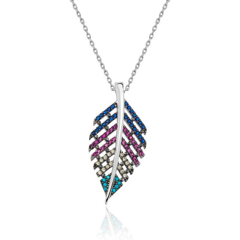 Yaprak deseni; tabiattan almakta olduğu kuvveti, saygıyı ve zarafeti simgeler. Güçlüyüm, yeniden doğmayı bilirim imajı çizmektedir ve evrene olan saygıyı belirtmektedir. Çiçekler ve bunla birlikte yapraklar, insanoğluna tabiatın verdiği en güzel hediyelerdendir. Doğanın verdiği bu bereketli hediyeyi sevdiklerinizle paylaşmaya ne dersiniz. Mix taşlı yaprak kolye; 925 ayar gümüşten imal edilmiştir. Gümüş üzerine rodyum kaplama yapılmıştır. Diğer kolyelerde olduğu gibi gümüş mix taşlı yaprak kolye de el emeği ile üretilmiştir. Gümüş ve değerli taşlar nedeniyle belirtilen ortalama ürün ağırlığında ± %10 sapma olabilmektedir.