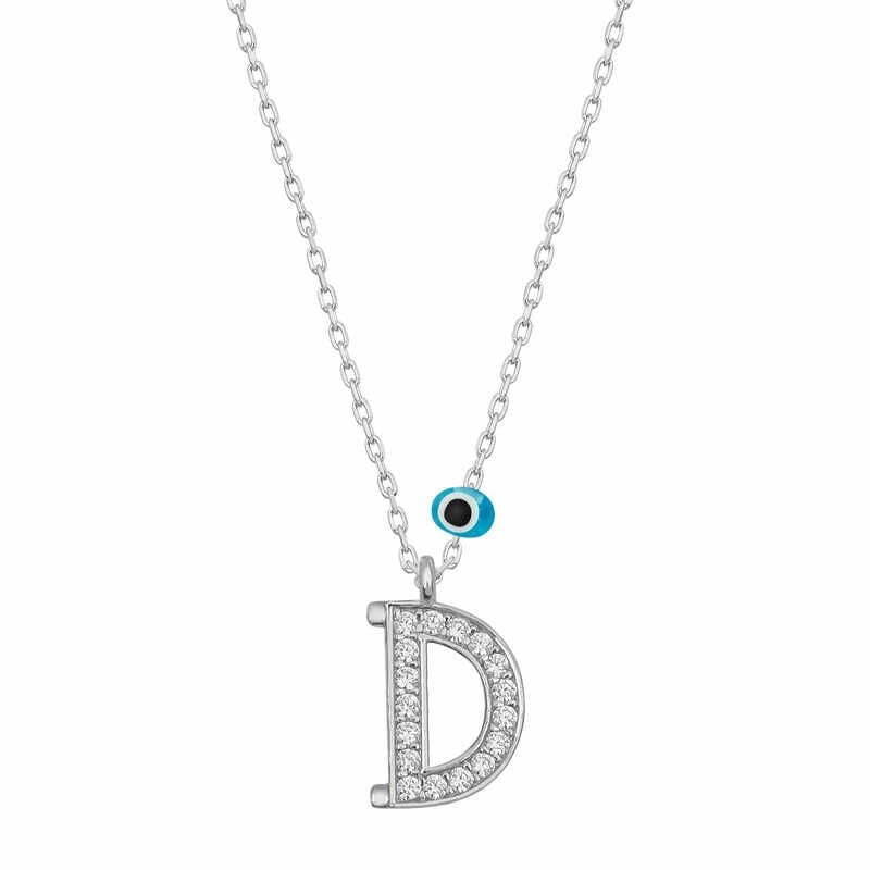 Gümüş Nazar Rodyum D Harfi Kadın Kolye