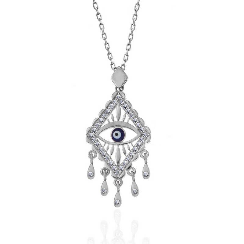 Gümüş Nazarlı Göz Kadın Kolye