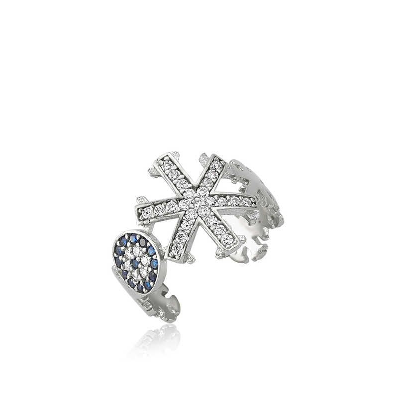 925 Ayar Gümüş Nazarlı Kar Tanesi Ayarlamalı Yüzük LR2230026 (491491)