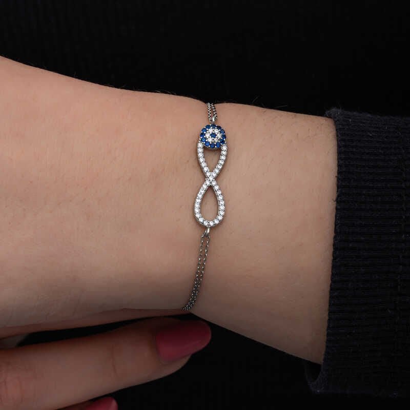 Gümüş Nazarlı Sonsuzluk Kadın Bileklik