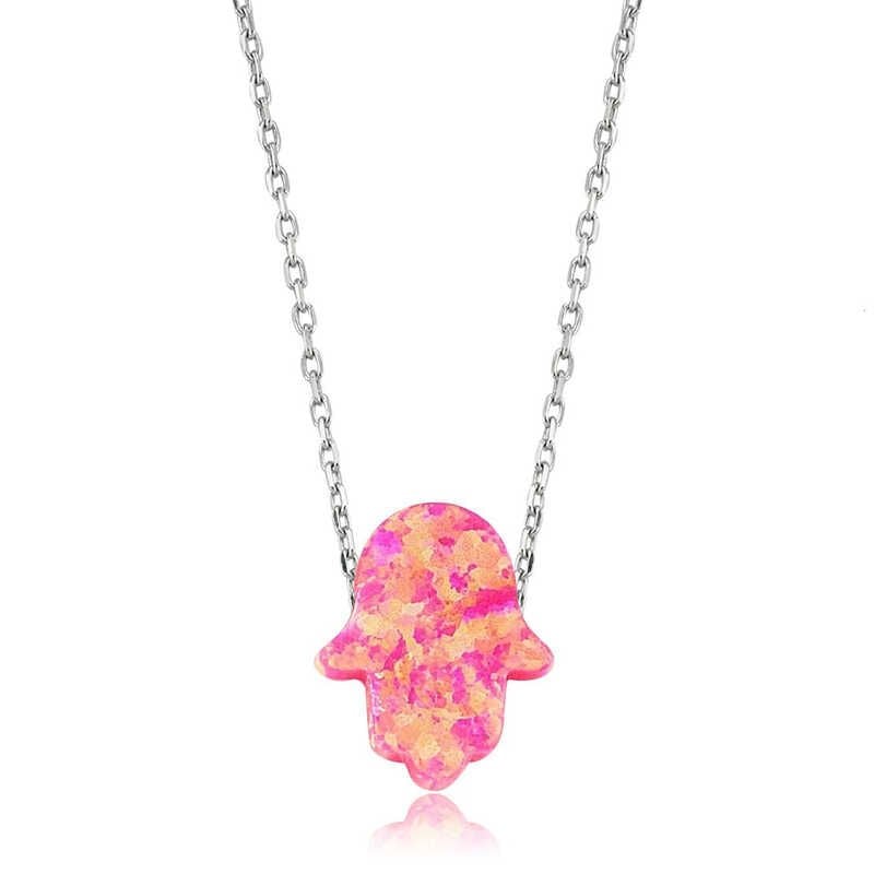 925 Ayar Gümüş Pembe Opal Fatma Eli Kadın Gümüş Kolye PT2610042 (491491)